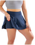 • Classic women’s high-waist, flared skirt with integral short for tennis and all court sports. With 2 ball pockets, this hi-stretch recycled fabric offers brilliant drape, flare and sustainability
